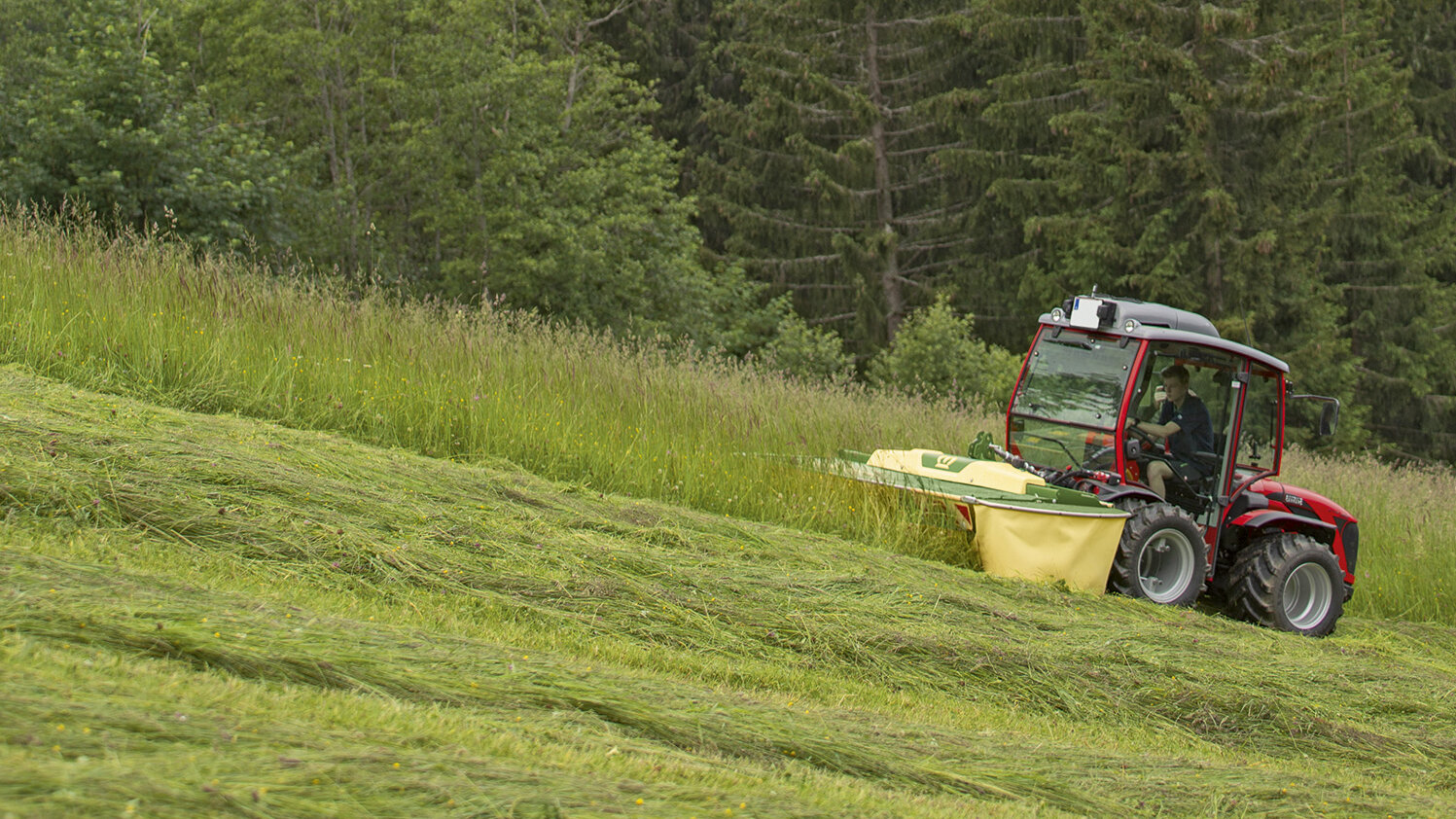 Grâce au centre de gravité bas et à l'attelage très proche du tracteur, les faucheuses Highland sont parfaitement adaptées aux pentes. Au choix la compensation hydraulique du tracteur de pente ou en option les ressorts de suspension pour permettre de reporter le poids de la faucheuse sur le tracteur et limiter ainsi la dérive.