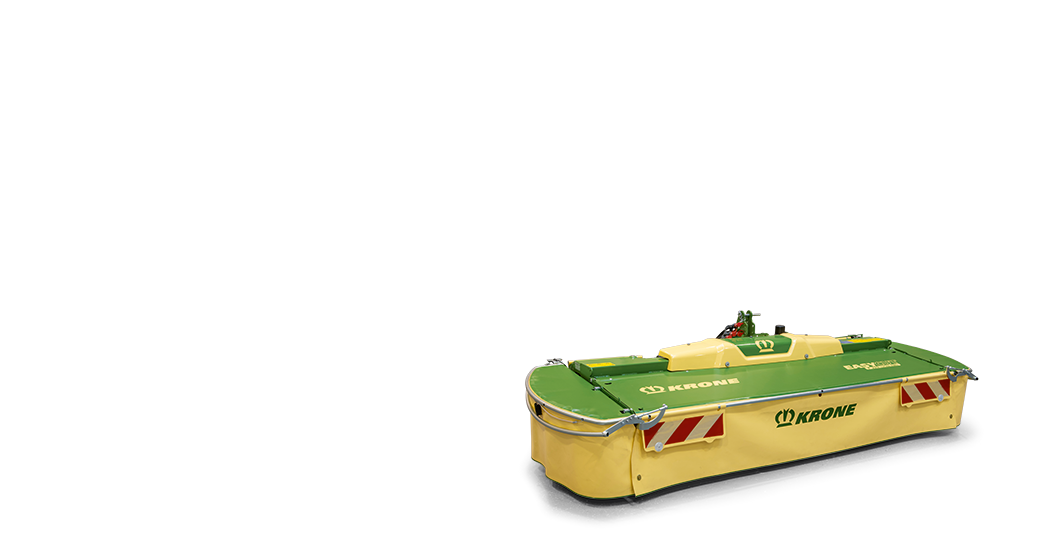 Grâce au déport hydraulique latéral sur le chassis d'attelage, la faucheuse frontale peut être être adaptée à la dérive latérale du tracteur – simplement et confortablement depuis la cabine. En interaction avec les quatre tambours de coupe sur les assiettes exterieures, le fourrage est déposé aussi étroit que nécessaire pour ne pas être écrasé. La récolte humide est ainsi déposée aérée et ventilée sur le tapis végétal.