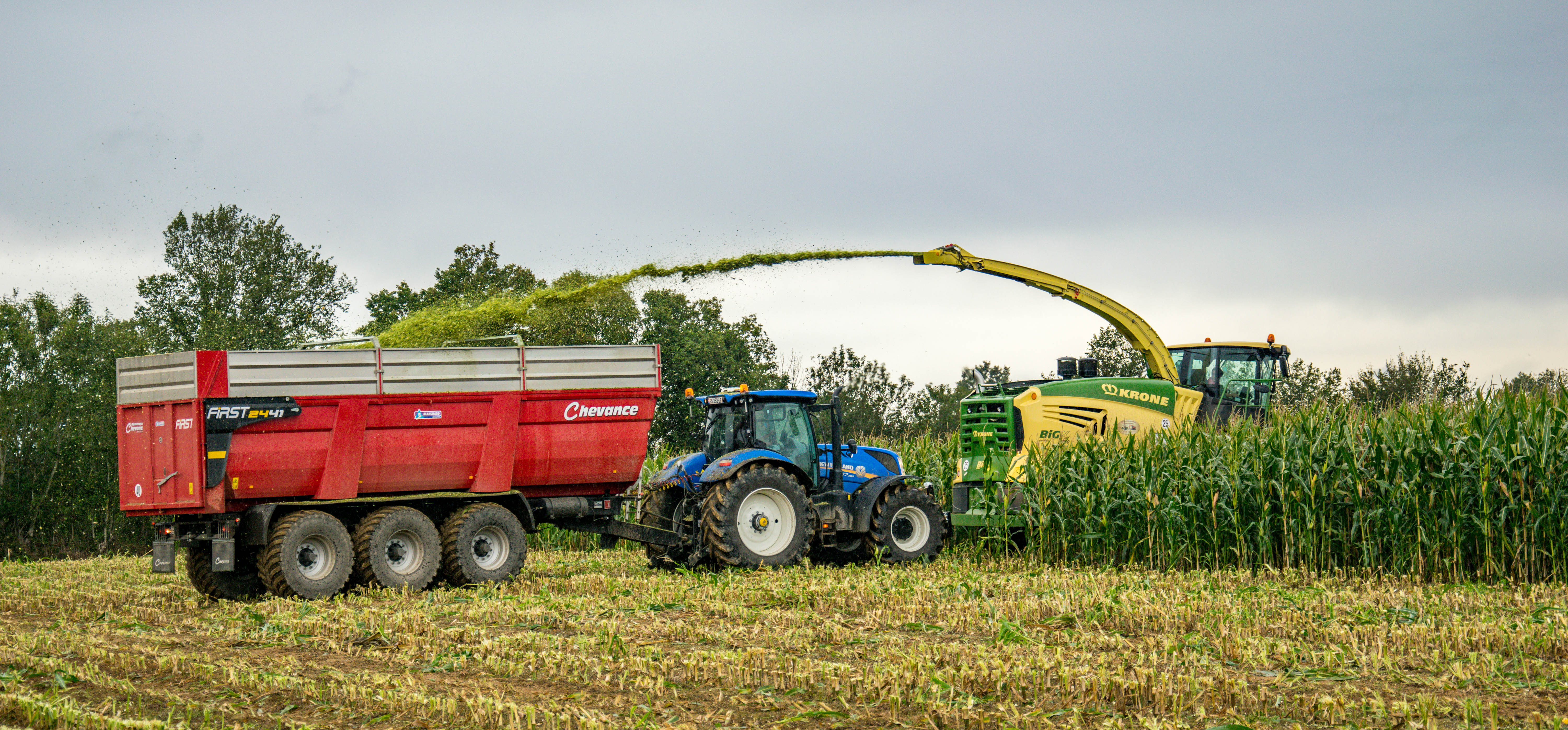 Damien nous explique que dans ce bassin d'élevage laitier important, les exploitations se transforment, il n'est pas rare de devoir effectuer des chantiers d'ensilage de 30 à 60 hectares par jour. "Même avec des maïs à hauteur de cabine, ce qui est courant, nous maintenons une vitesse moyenne de 7 à 8 km/h. Grâce à la performance de nos BiG X, nous pouvons maintenant répondre à cette demande de nos clients en effectuant de gros chantiers en une seule journée." nous relate-t-il.