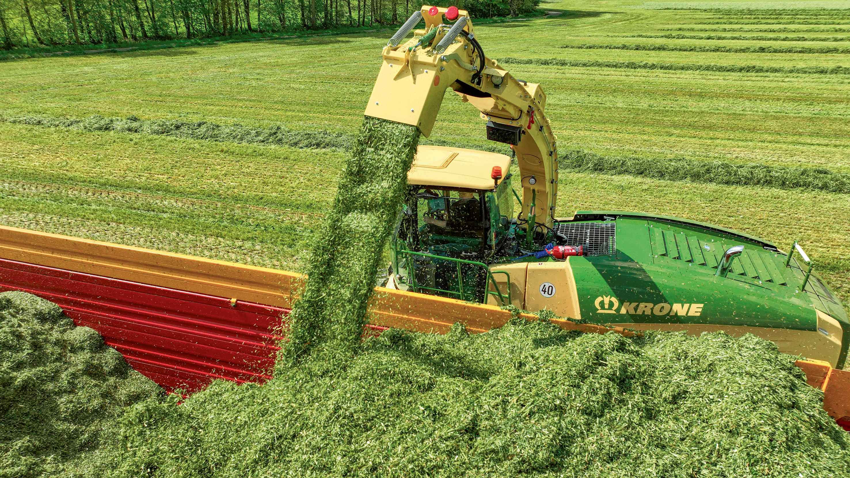 Le attrezzature per la fienagione Krone, con fronte operativo adeguato in modo ottimale alle caratteristiche strutturali degli appezzamenti, ha permesso di ottenere un foraggio di base di elevata qualità da ben 30 ettari di coltura foraggera intercalare con impegno temporale e fabbisogno di carburante ridotti. Seguendo il principio del lavoro a regola d’arte sono state rilevati e documentati tutti i principali parametri, come le impostazioni, i processi di essiccazione, le rese, la composizione del foraggio, i consumi di carburante e le emissioni di CO2 risultanti; nel giro di due giorni è stata insilata erba con sostanza secca dal 32 sino al 35% e trinciata ad 8 e 12 mm di lunghezza. La resa complessiva si è attestata sulle 723 tonnellate, il consumo complessivo di gasolio sui 1574 litri, con 5,77 kg di emissioni di CO2 per tonnellata di foraggio, queste ultime ripartite sull’intero processo di fienagione come segue: falciatura 20%, arieggiare 6%, andanatura 8%, trinciatura 32%, trasferimenti logistici 25% e compattamento 9%.