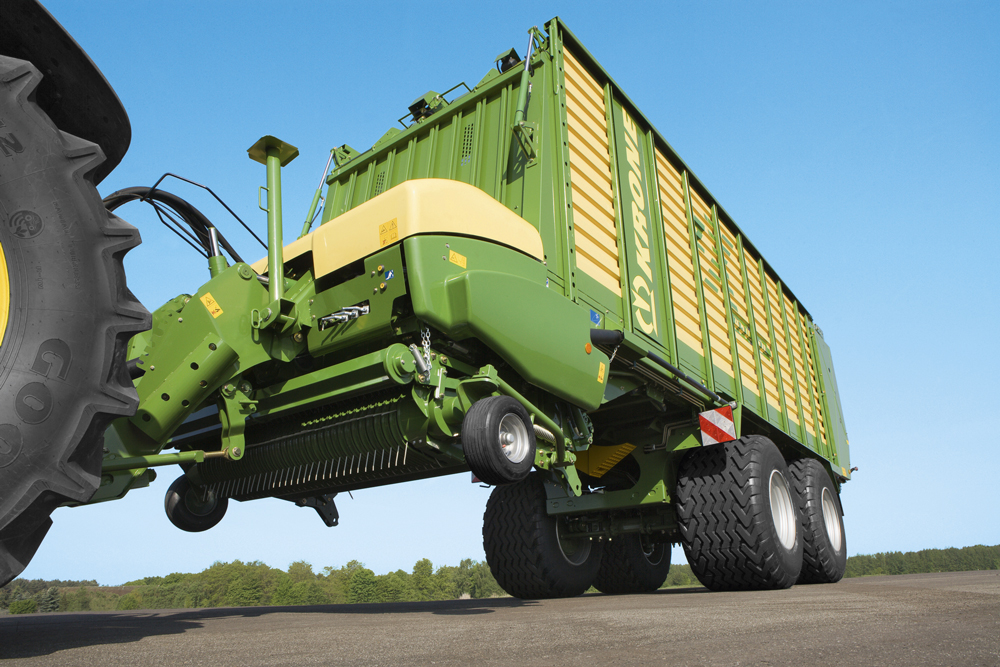 Spelle, giugno 2015 – qualsiasi utilizzatore di carri autocaricanti conosce questa situazione: A bordo campo l'altezza di sollevamento del raccoglitore è spesso appena sufficiente. Krone offre ora in opzione il sistema automatico di comando a bordo campo per il raccoglitore e il timone pieghevole. L'operatore può impostare mediante il terminale, prima dell'inizio del lavoro, diverse posizioni del timone, rilevate mediante un apposito sensore. Mediante il sistema automatico l'operatore ha la possibilità di salvare una posizione superiore e una inferiore del timone. La posizione salvata viene poi impostata in modo automatico. Al sollevamento del raccoglitore il timone pieghevole viene portato in automatico alla posizione superiore preimpostata (ad es. per incrementare la luce libera da terra a bordo campo o per transitare sopra ad andane). Abbassando il raccoglitore il timone viene riportato alla posizione inferiore (ad es. posizione di carico).