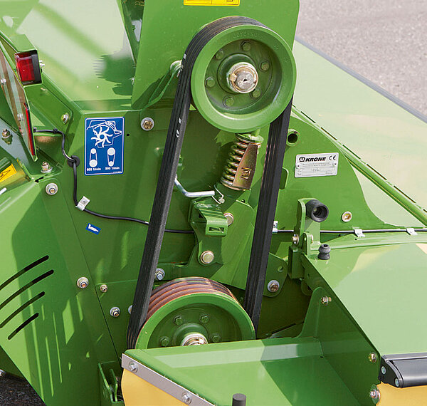 L'azionamento è assicurato da una cinghia a tensionamento automatico e da una scatola di trasmissione angolare, dal tamburo alla barra. Lo scatto libero è integrato di serie nell'albero cardanico.