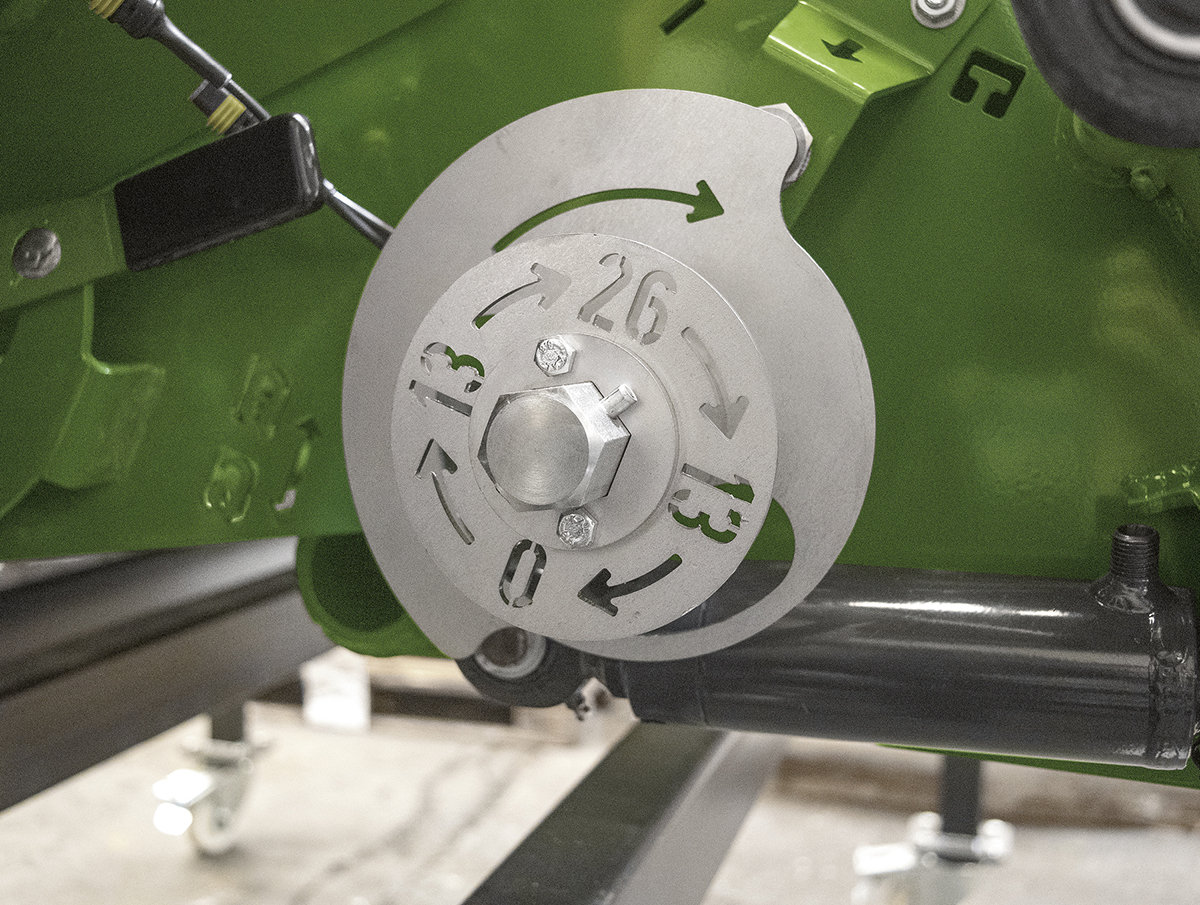 Die Auswahl der Messergruppen erfolgt komfortabel aus der Kabine des Schleppers. Mithilfe des Hydrauliksystems wird die entsprechende Messergruppe ausgewählt.