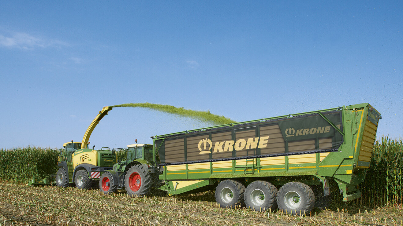 I carri KRONE per insilato sono ideali per gli impieghi più gravosi, con un peso totale a terra sino a 34t. Maggiore volume di carico grazie alle innovazioni come il pianale mobile abbassato anteriormente e le pareti anteriori e posteriori inclinate. L'enorme apertura verso l'alto facilita il carico riducendo le perdite di prodotto. La paratia posteriore inclinata offre vantaggi nelle manovre a ridosso di recinzioni, dato che la parte superiore può passare sopra ai pali.