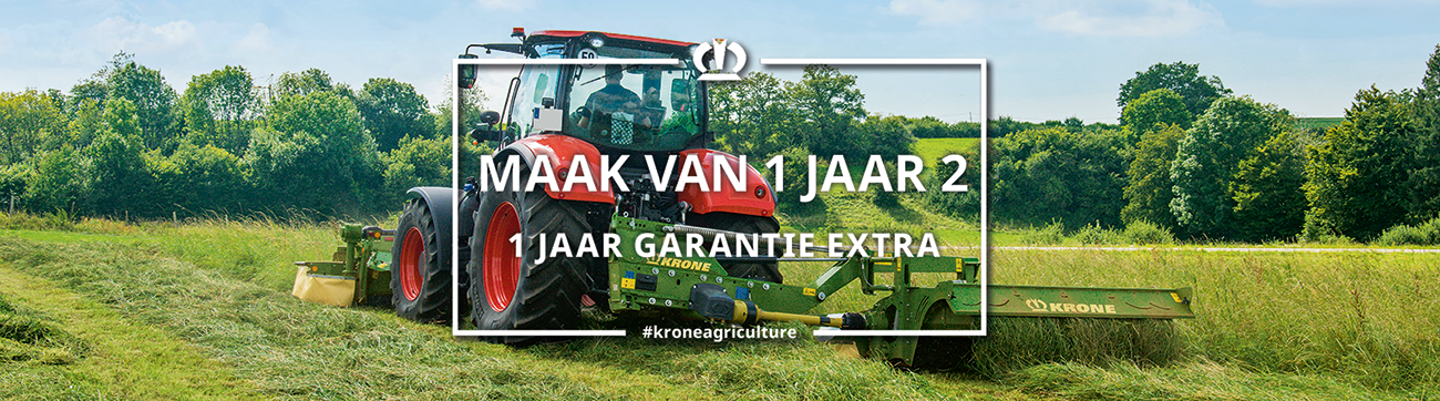 - Geldt alleen bij aanschaf van een KRONE maaier, schudder of hark vanaf modeljaar 2023 of nieuwer (uitgezonderd zijn; vlindermaaiers en 4- en 6-rotorharken).