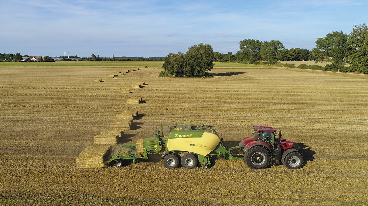 Tijdens het persen verzamelt de KRONE BaleCollect tot drie vierkante balen van 120 cm breed, of optioneel tot vijf balen van 80 cm. Dankzij de verschillende aflegvarianten kunnen de balen optimaal worden neergelegd voor de navolgende werkgang in het veld. Hierdoor zal veel tijd worden bespaard bij het opruimen van de balen en minder over het perceel worden gereden, om zodoende bodemverdichting tot een minimum te beperken.