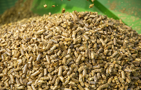 In het binnenste van de walsen voeren interne transportvijzels de geperste pellets naar de transportelevator, die ze voor het verwijderen van stof door een roterende zeef leidt. Fijne deeltjes die door de zeef vallen, worden opnieuw naar de matrijswalsen gevoerd. Op deze manier worden kwalitatieve pellets geproduceerd.