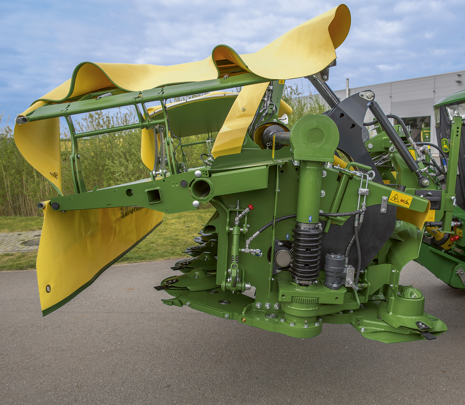 De maaier wordt door een hydraulische cilinder in de getrokken aanbouwbok bijzonder ver geheven. Daardoor wordt er ook op ongelijk terrein altijd voor voldoende bodemvrijheid gezorgd. Bij de zwadafleg met butterfly combinaties blijft er op de wendakker voldoende ruimte voor zwaden met groot volume.