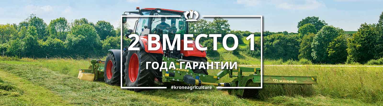 - Действительно только при покупке техники KRONE модельного года 2023 и позже (косилки, ворошители, валкователи; за исключением триплекс-комбинаций косилок, 4-х и 6-роторных валкователей).