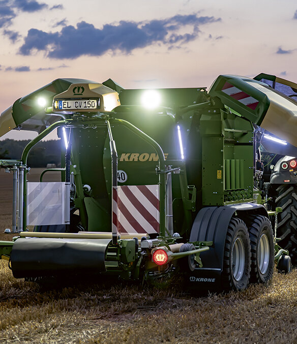 Die weit aufstellbaren Seitenschutze sorgen für eine sehr gute Zugänglichkeit der gesamten Maschine. Dank der LED-Leuchten unter den Seitenschutzen sind Wartungsarbeiten auch bei schlechten Lichtverhältnissen schnell und sicher durchführbar. Auch die Binde- und Wickeleinrichtung und deren Umfeld wird über LED-Leuchten gut ausgeleuchtet und gewährleistet so auch bei Dunkelheit eine perfekte Überwachung.