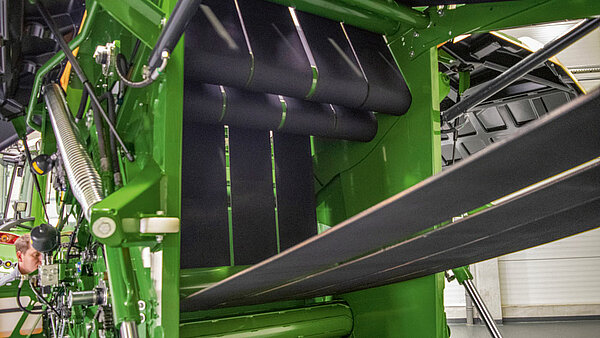 Центральный элемент VariPack состоит из четырех бесконечных прессующих ремней. Чтобы добиться гибкости ремней при одновременной прочности, они изготовлены из каучука с двумя интегрированными слоями ткани для максимального срока службы. Благодаря цепкому материалу в сочетании со специальной структурой поверхности достигается интенсивный контакт с кормом. Это предотвращает проскальзыванию ремней и оптимизирует эксплуатационную надежность.