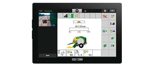Терминал управления ISOBUS CCI 800 имеет 8,0" сенсорный дисплей с 12 функциональными клавишами. Также управление может быть расширено джойстиком или системой камер для оптимального комфорта управления. Переключение функций производится комфортно нажатием кнопки на маленькие пиктограммы с левой стороны.