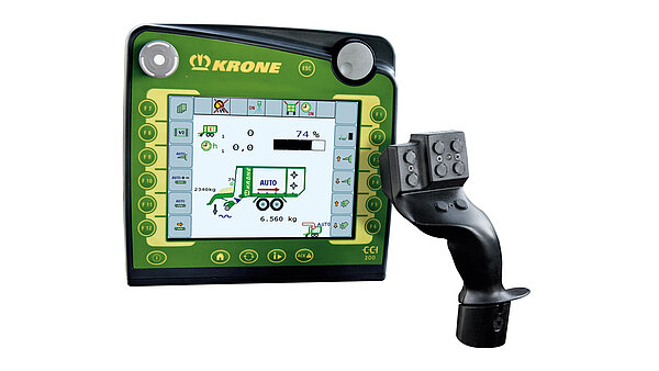 Бортовая электроника KRONE типов Medium и Komfort значительно упрощает, улучшает и ускоряет работу с самозагружающимся прицепом АХ. Для различных поставленных задач в распоряжении имеются различные терминалы управления.