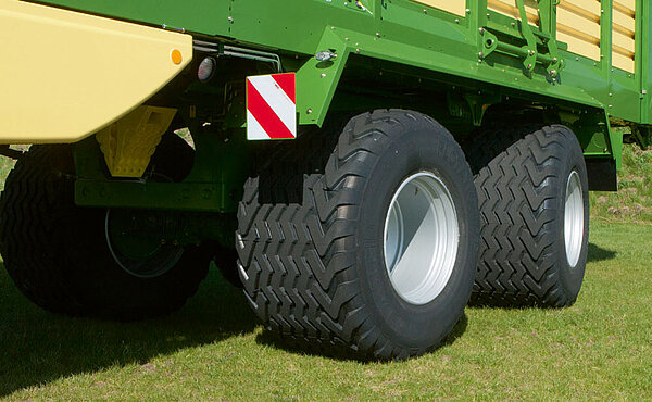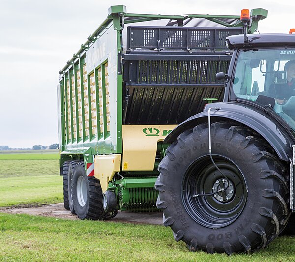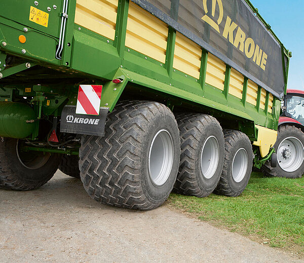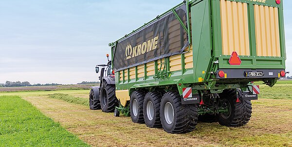 Более мощные и быстрые трактора, более высокие транспортные объемы и полезные нагрузки требуют переосмысления понятия безопасности. По данной причине компания KRONE в сфере грузовой техники предлагает проверенную электронную тормозную систему EBS. Управляемые оси помогают сохранять дернину и повышают уровень безопасности.
