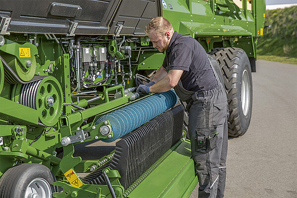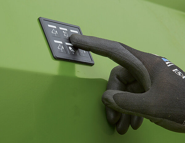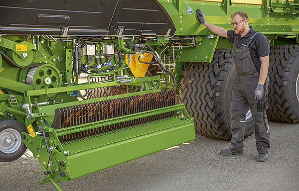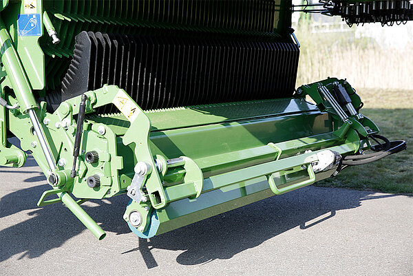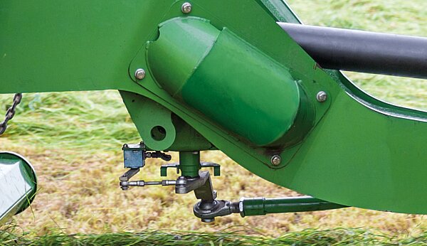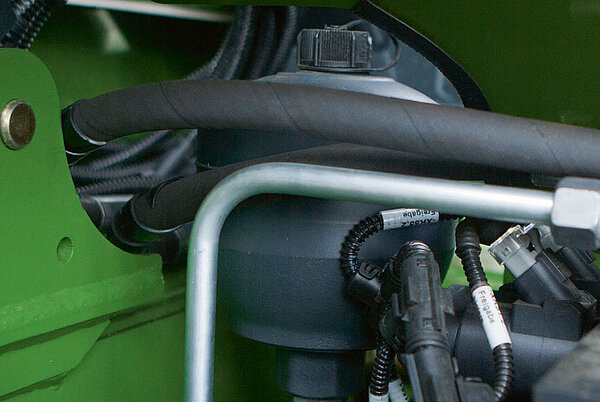 Без вреда для почвы: Электрогидравлическое снятие нагрузки с подборщика посредством энергоаккумулятора обеспечивает еще лучшее сохранение почвы. С помощью этой системы водитель может теперь удобно регулировать разгрузочное давление даже во время работы из кабины, не выходя из трактора.