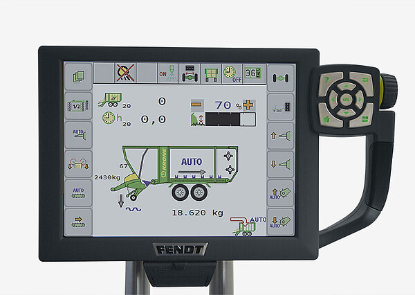 Пользовательский интерфейс KRONEZX особенно удобен благодаря простоте и интуитивной понятности. С помощью визуализации показаныразличные рабочие операции, например, вращение дозирующих вальцов. Больший комфорт обеспечивает настраиваемая панель дисплея, спомощью которой пользовательский интерфейс может быть индивидуально адаптирован к потребностям пользователя. Имеются и автоматические функции, такие как система автоматической загрузки PowerLoad,система автоматической разгрузки и автоматика дышла.