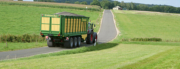 Прочь от края: Каждому известно: если ехать близко к краю траншейного силосохранилища существует опасность соскальзывания. При электрогидравлическом принудительном управлении задние колеса тандемной оси или передние и задние колеса тройной оси могут принимать такое положение, что прицеп уезжает от края силосной/сенажной траншеи.