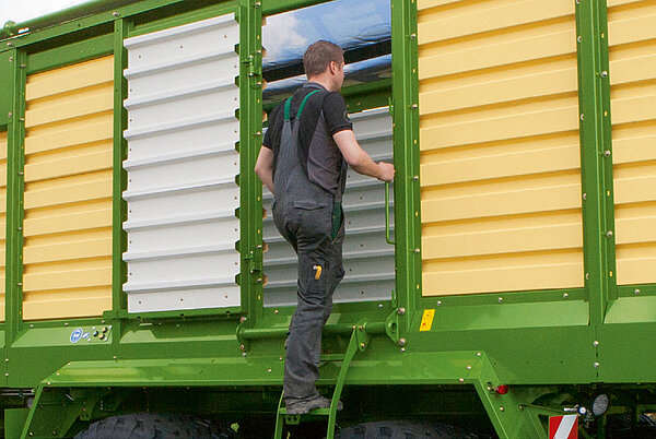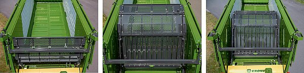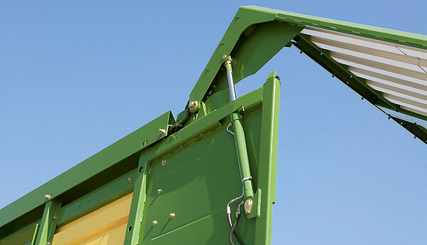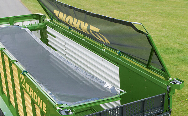 Универсально и надежно: Входящее в дополнительную комплектацию крышки грузового пространства являются гибкими и адаптируются к контуру загруженной массы. Откидывыемые в сторону сетки надежно прилегают к собранному урожаю и не поднимаются при быстром движении.