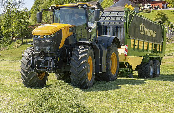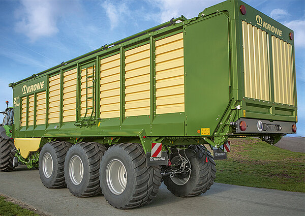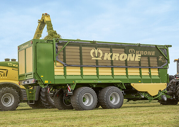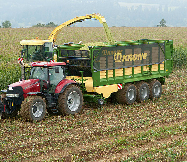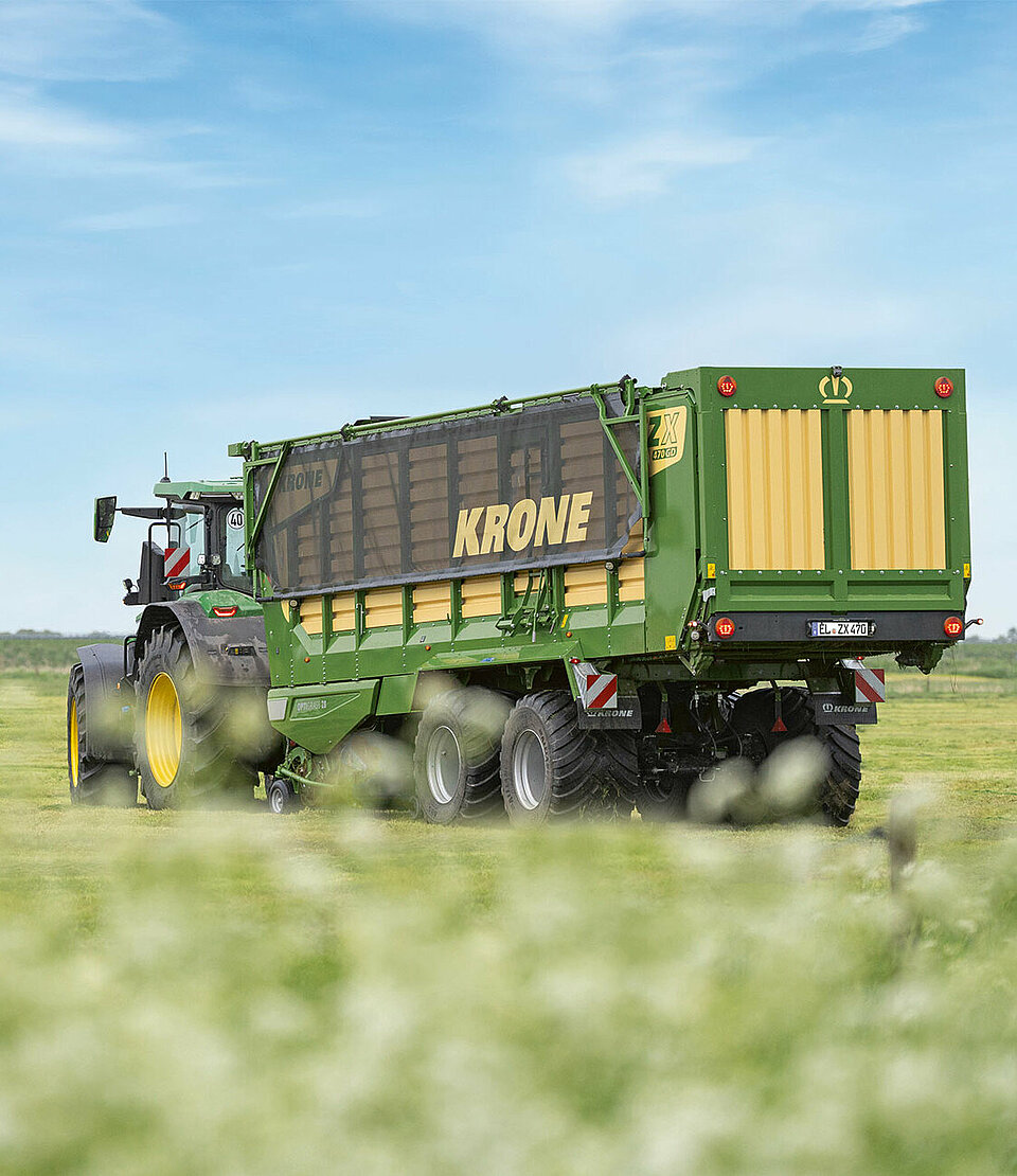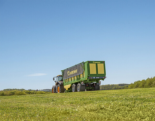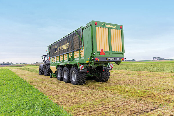 - Мощнейшие самозагружающиеся прицепы и прицепы для транспортировки измельченной массы мира: благодаря KRONE Powerbelt передача мощности до 400 л.с.