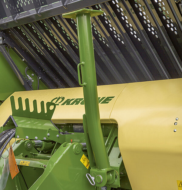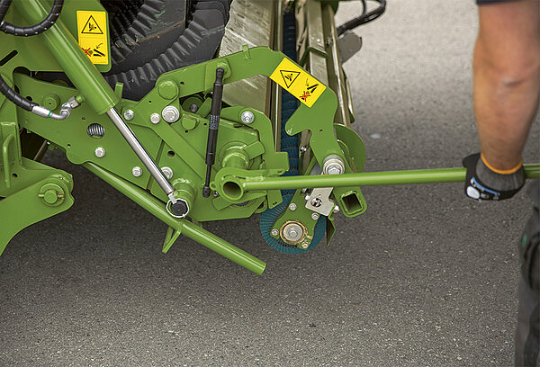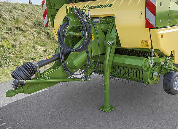 ZX оснащен складной опорной стойкой. Для агрегатирования и снятия складное дышло подстраивается при помощи гидравлики к высоте сцепного устройства трактора. Это выполняется быстро и просто.