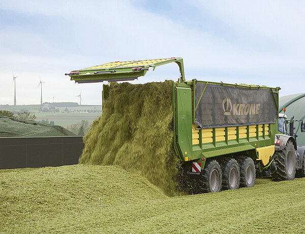 Измельчение без потерь: ZX превосходно загружается с кормоуборочного комбайна. Поскольку на нем нет растяжек, трубчатых дуг или откидных тентов, которые могли бы помешать потоку растительной массы, загружаемой кормоуборочным комбайном. Используется каждый уголок кузова.