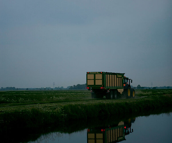 Работа ночью выдвигает высокие требования водителям кормоуборочной техники. По этой причине компания KRONE предлагает в дополнительной комплектации для ZX дополнительное освещение, обеспечивающее высочачшую безопасность. Входящее в дополнительную комплектацию покрытие кузова отвечает ща «чистую» транспортировку при быстрой езде и повышает безопасность в дорожном движении.