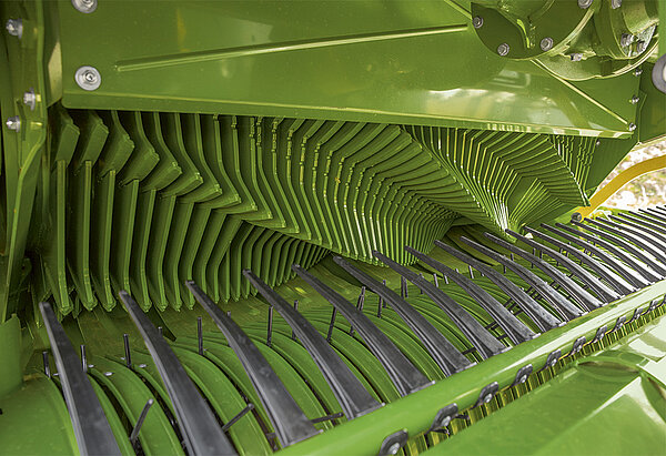 С системой OptiGrass серия ZX предлагает два варианта режущего аппарата с теоретической длиной резки 28 или 37 мм. Концепция интегрального ротора, который режет точнее и короче, чем когда-либо, с меньшим количеством ножей, обеспечивает компактность нарезанных пакетов. В сочетании с подборщиком EasyFlow, режущим ротором OptiGrass и системой кромочного резания SpliCut KRONE ZX обеспечивает оптимальный результат в любых условиях.