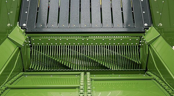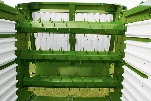 Уникально: Расположенные на трубе круглого сечения W-образно расположенные двойные зубья отвечают за непрерывный поток кормовой массы и равномерную подачу на режущий и подающий агрегат по всей ширине. Результат: большая производительность и лучшая загрузка.