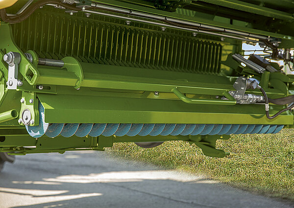 EasyFlow – быстрая езда, чистая уборка: Благодаря ширине захвата 2,12 м в соответствии с DIN 11220 не требующий управления широкий подборщик со спирально расположенными зубьями и с независимым от режущего и подающего ротора гидравлическим приводом работает убедительно даже тогда, когда требуется больше производительности. Большие и неравномерно уложенные валки подбираются равномерно и чисто. Простая регулировка высоты позволяет быстро адаптироваться под вид собираемой растительной массы, к толщине валка и скорости движения.