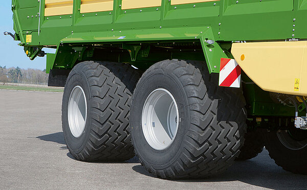 Инерционные и принудительно управляемые тандемные оси с гидравлической компенсацией выполняют все практические требования. Ходовая часть обеспечивает устойчивость при боковом раскачивании и быстром движении на поворотах и к тому же устойчивость на склоне. С помощью этих осей переезды совершаются безопасно и комфортабельно.